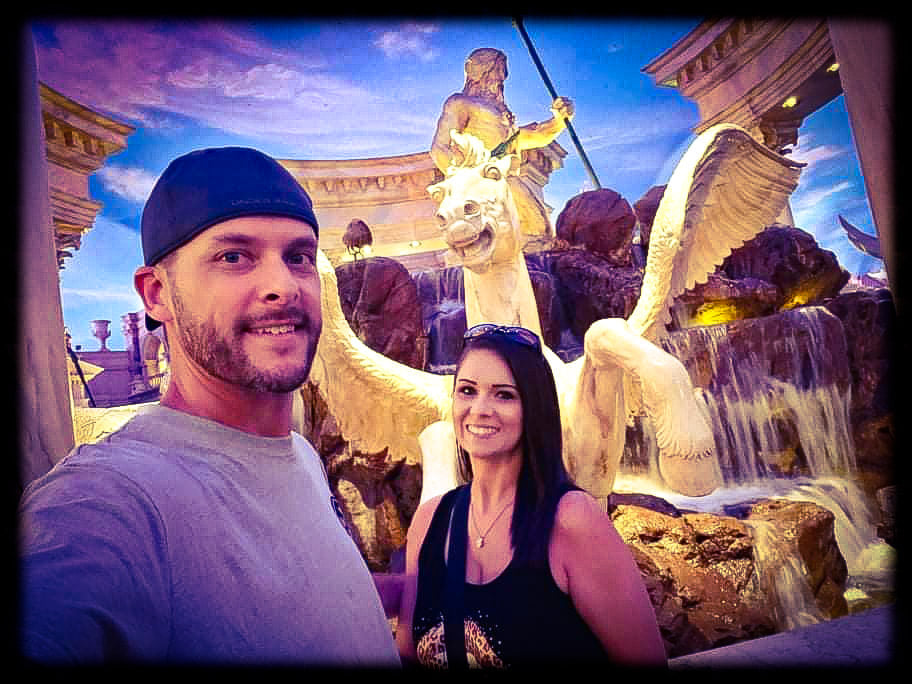 Off to explore on day 2! We headed to Red Rock casino for some lunch at Lucille’s Bbq. OMG it was so good! I had the smokehouse burger and Chris had the gumbo. As we were dining Nicolas Cage and his wife came in and sat right behind us. So that was pretty cool! After our day of shopping we headed over to the Mirage casino to hang in the sports book and play roulette. Well it was a GREAT idea! We hit on roulette and walked out winners!!!!!