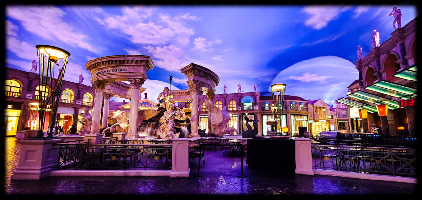 We arrived in Vegas around 7:30pm and headed straight to our hotel. This trip we decided to stay at Cesar’s Palace. We arrived and unpacked and headed down to explore the casino, the Forum Shoppe’s, play some roulette and just start vacation off right!