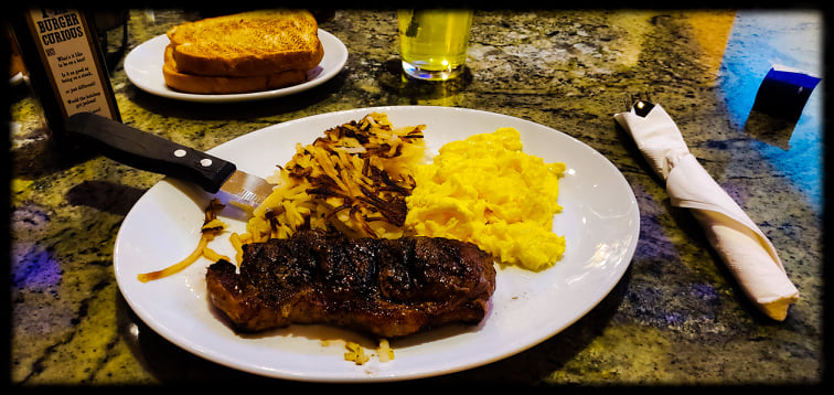 On our last day there we pretty much roamed the strip. We started with steak and eggs at The American located inside New York New York casino. Its the best breakfast on the strip at an amazing price. $16.50 and so tasty! Its our favorite!