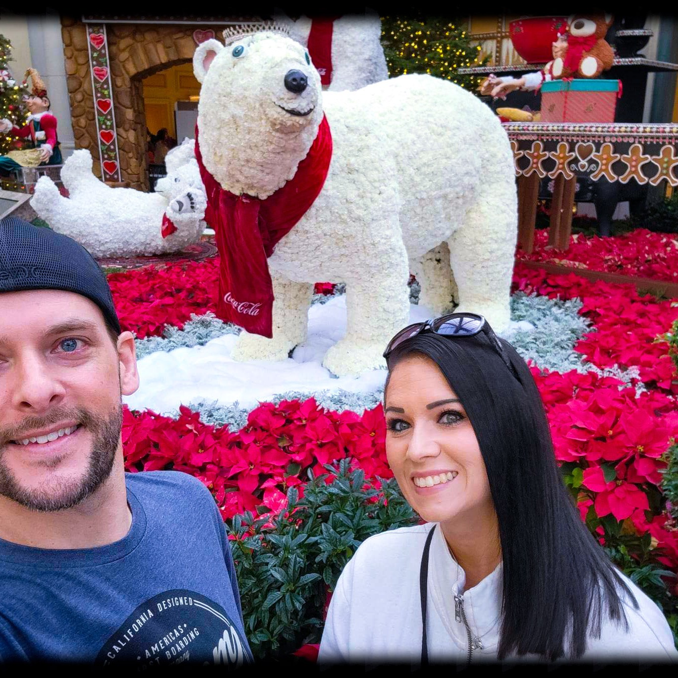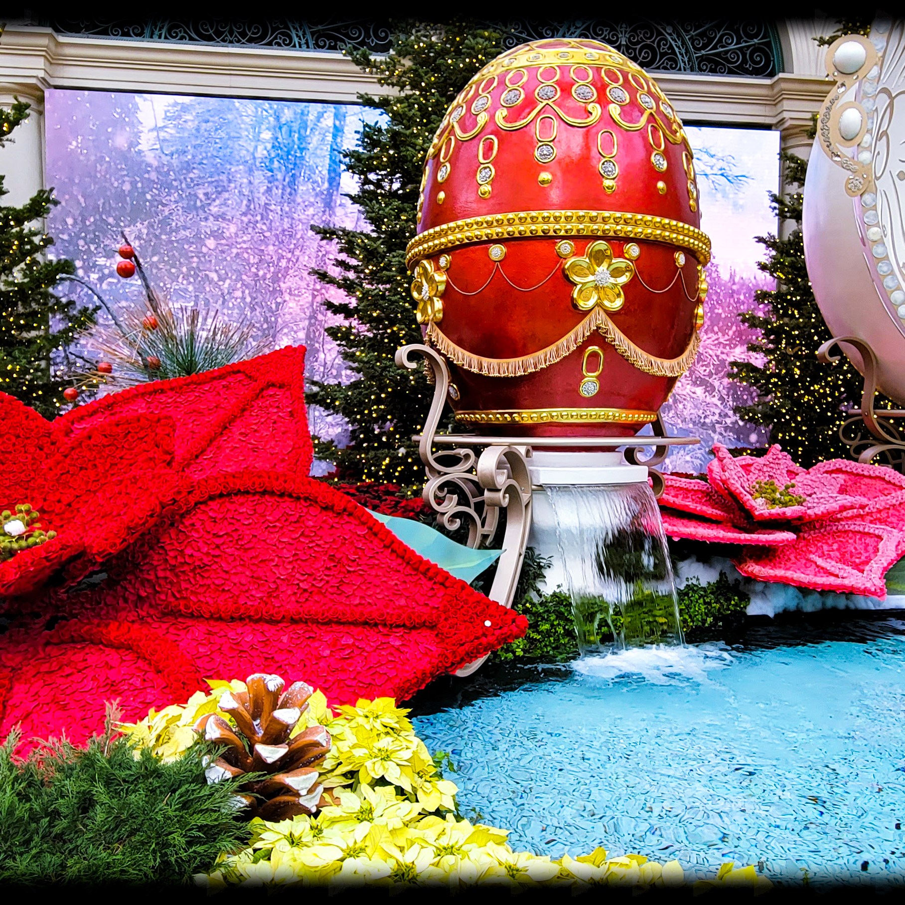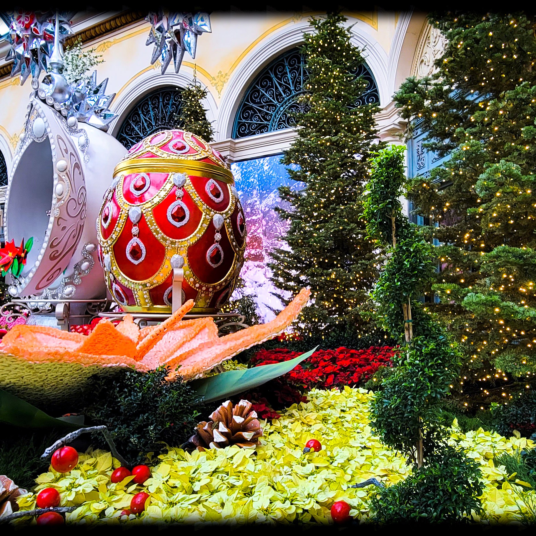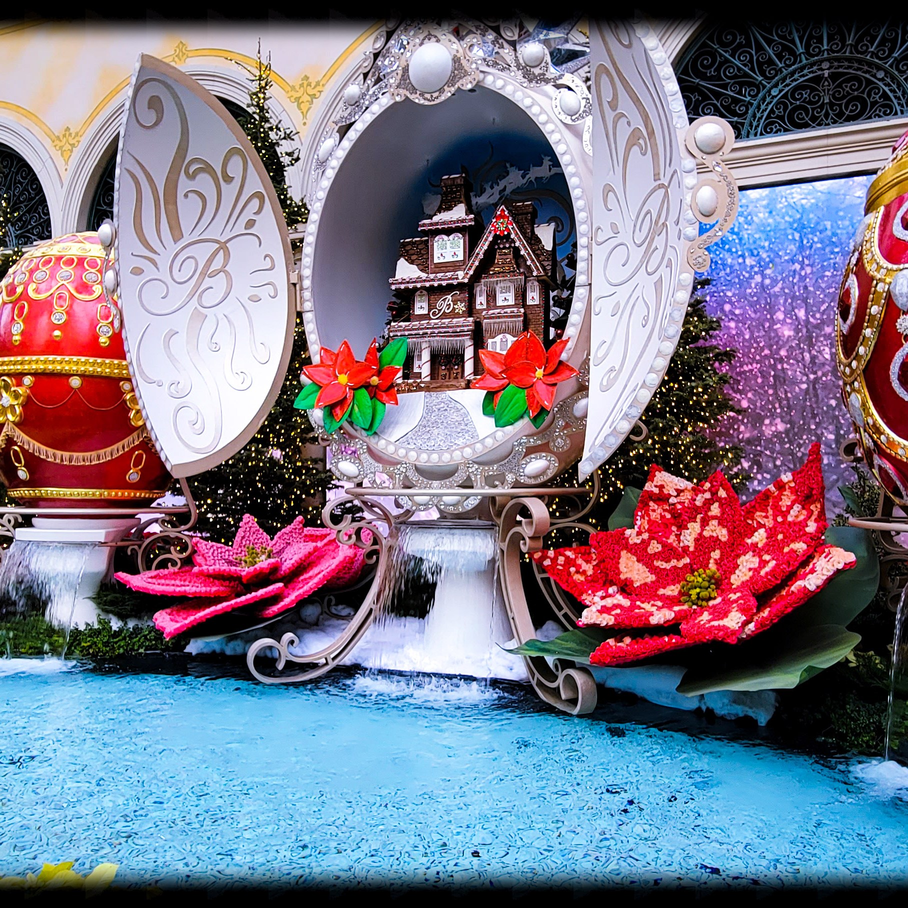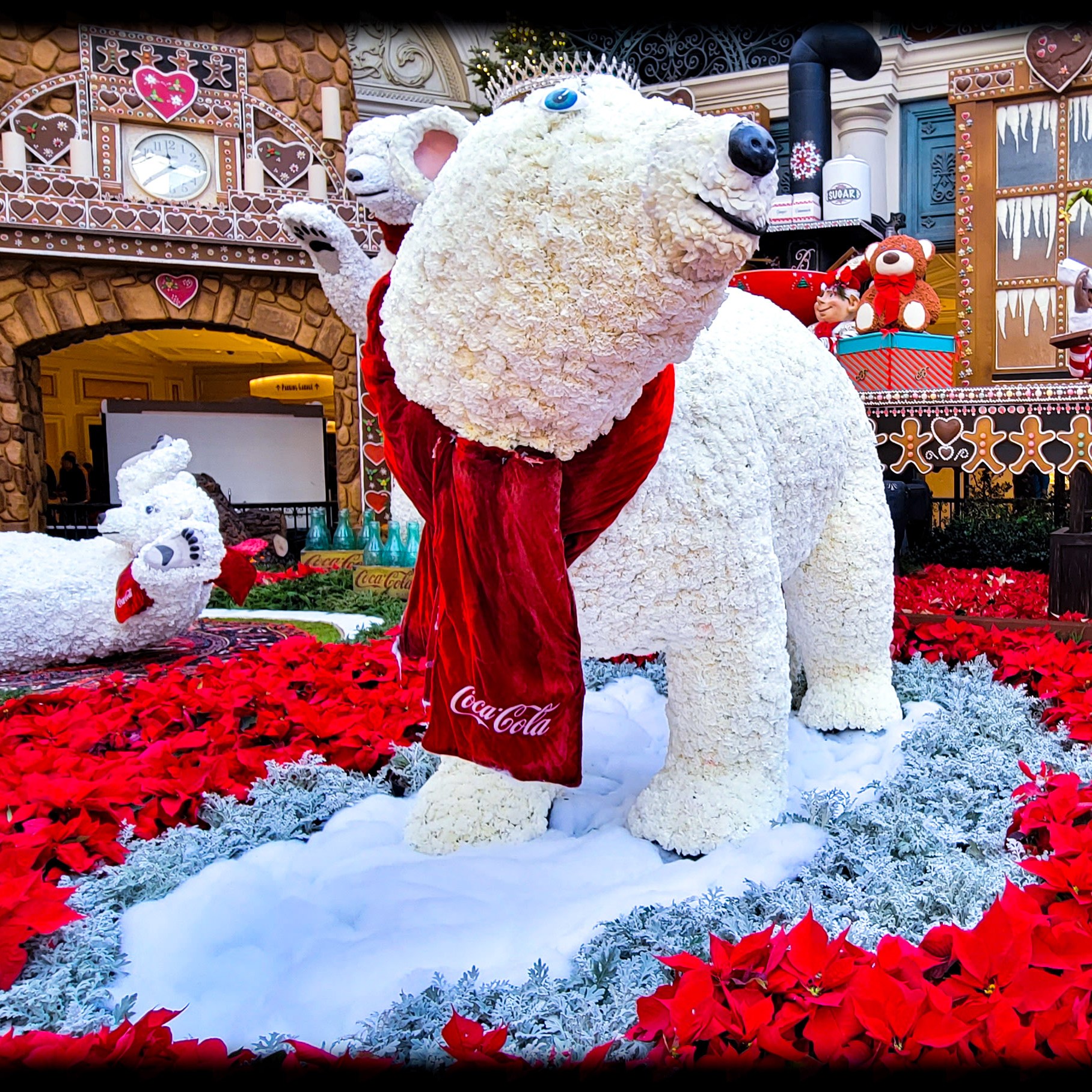On our first day there we decided to go out and see all the sights, Have some lunch, and enjoy the sunshine outside. Since it was 25 degrees and snowing back in Michigan. The weather was nice for December. It was about 65 -70 degrees the entire time we were there with blue skies and sunny. I just love the weather out west! Our first stop of the day was at the Bellagio, to walk through their botanical garden. It was all set up with a Christmas theme. Such a beautiful place to tour and walk through. Oh, and did i mention it’s free!!! They change the diplay with each season so its always a place i must visit every time i go out there.